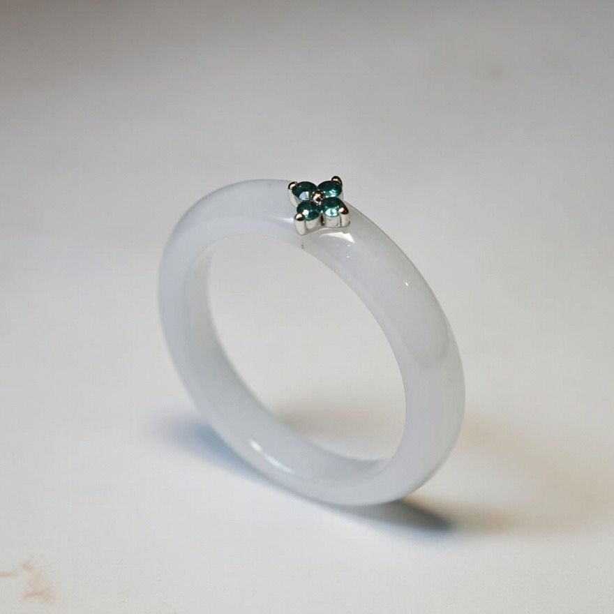 - Embellishment stone: emerald green zirconia stone clover shaped.