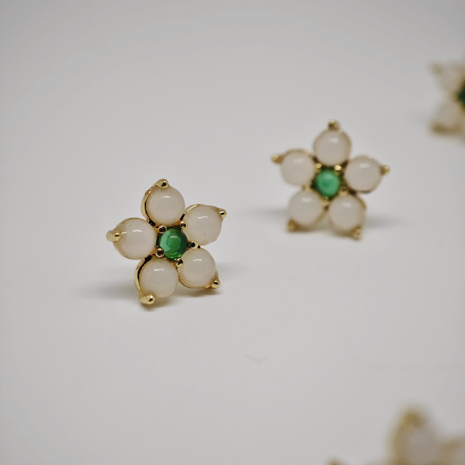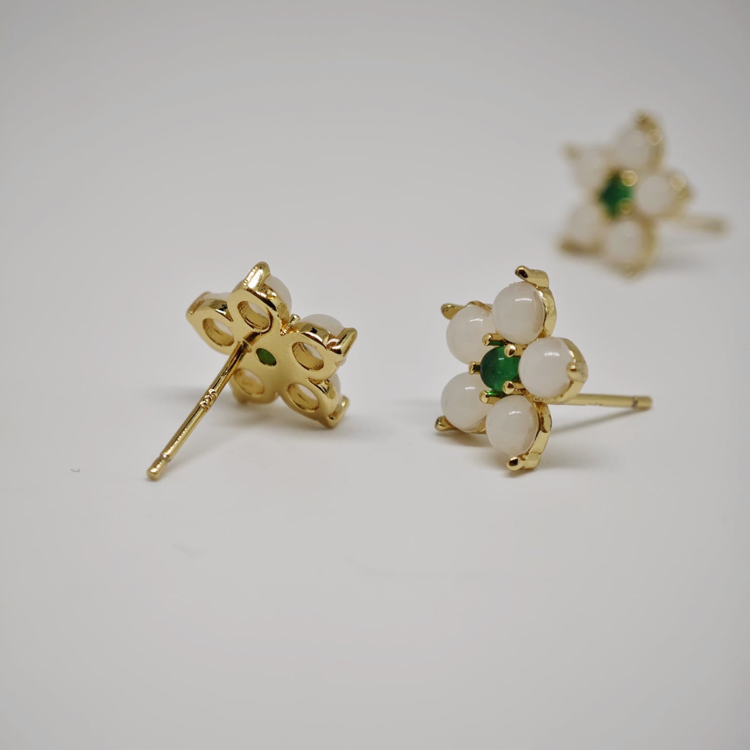 - 18k gold plated / White jade petals with green jade center