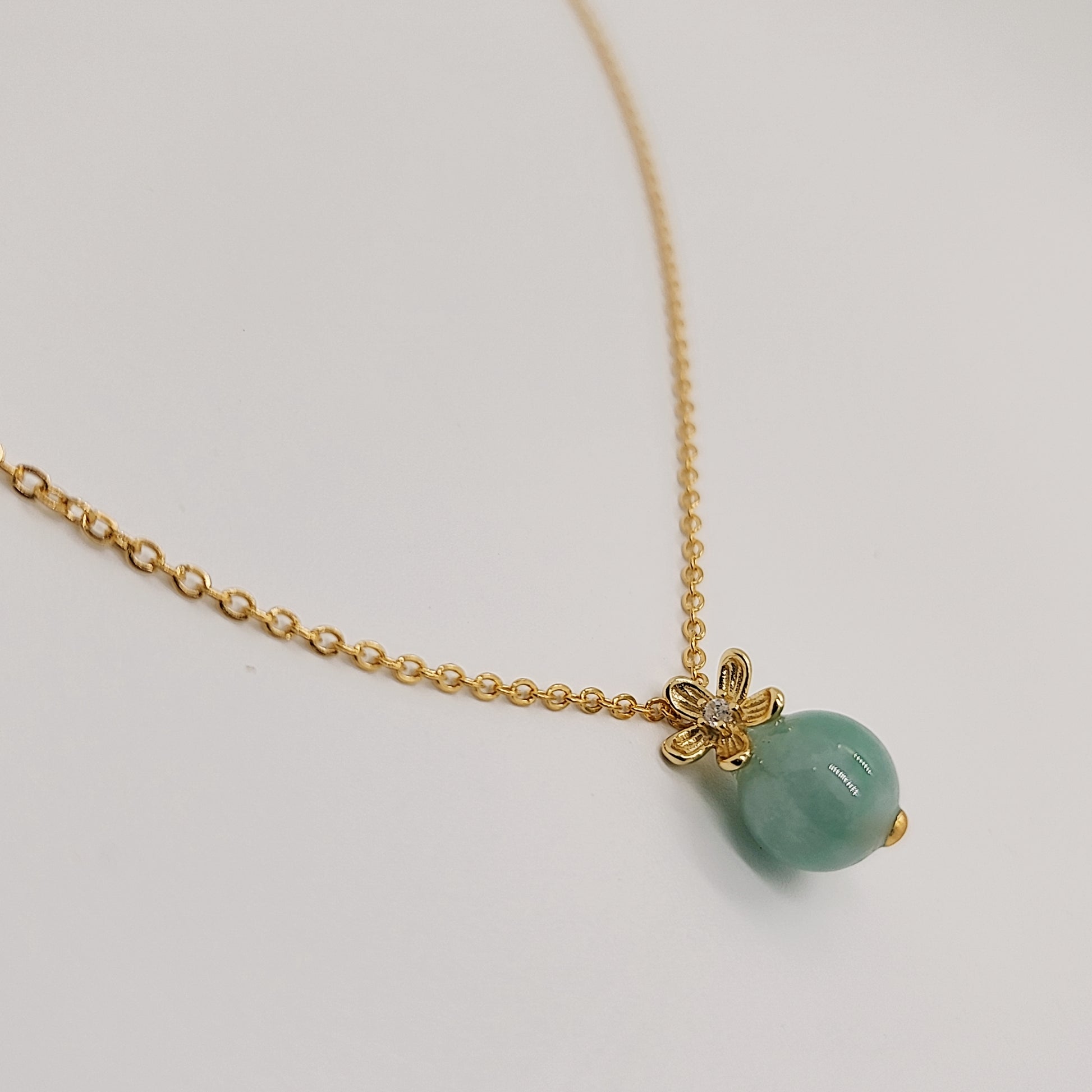 - Jade Petal Necklace (Gold with Seafoam Green Jade)