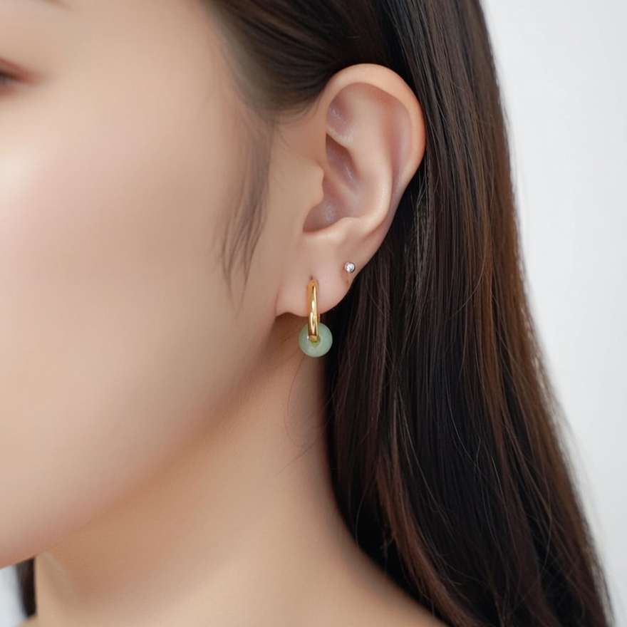 Introducing our Jade Polo Huggies with Removable Polo-Shaped Jade, a modern twist on a classic. These sleek earrings hug your earlobe with a unique rectangular design, and the detachable polo-shaped jade adds a touch of versatility to your style.